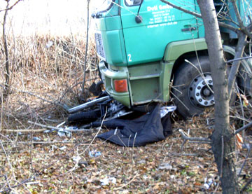 В результате столкновения водитель мотоцикла оказался под передней осью грузового автомобиля, где и был затиснут, получив многочисленные переломы. Пассажирка мотоцикла, 1953 года рождения, погибла на месте.