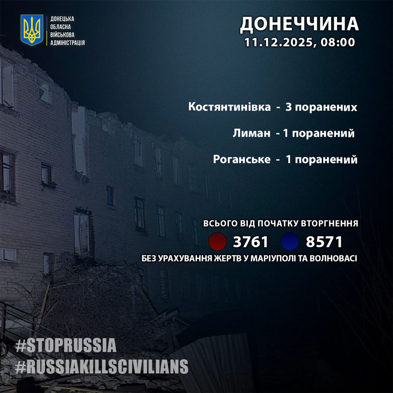 «За 10 декабря россияне ранили 5 жителей Донецкой области», - сообщил глава Донецкой ОВА Вадим Филашкин.