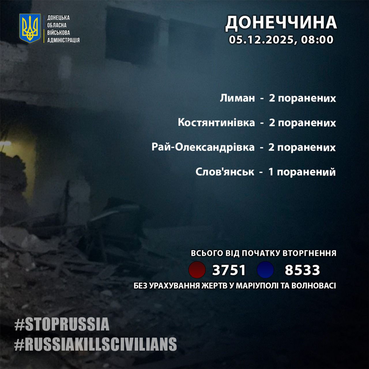 Напомним, 3 декабря в Славянске Донецкой области ранения получили 8 жителей громады, двое из них - дети.