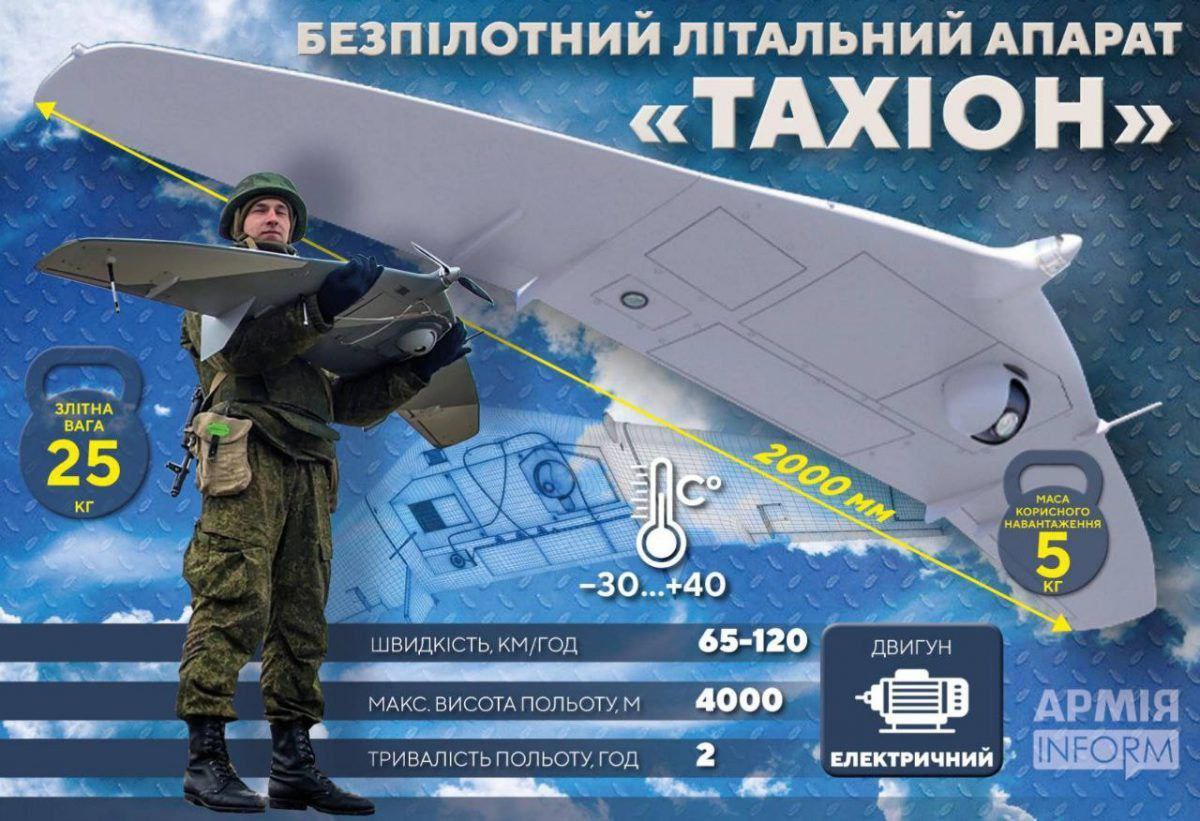 ""Тахион" – малый дрон, который используют днем и ночью. В зависимости от погоды применяют для разведки или корректировки огня в видимом и инфракрасном диапазонах волн. Кроме того, беспилотник может служить ретранслятором связи", - говорится в сообщении.