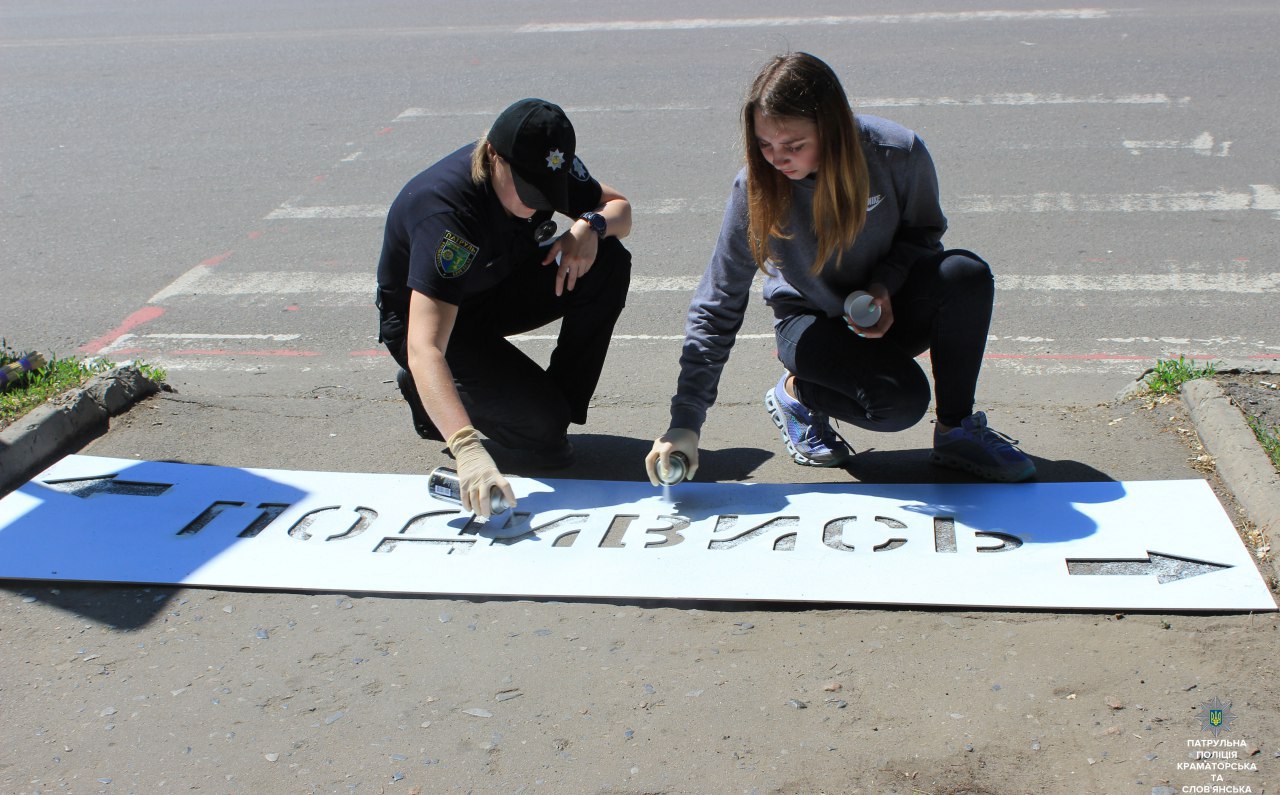 Граффити-подсказки для пешеходов появились на тротуарах в Краматорске 15 мая, - сообщает пресс-служба батальона патрульной полиции Краматорска и Славянска.