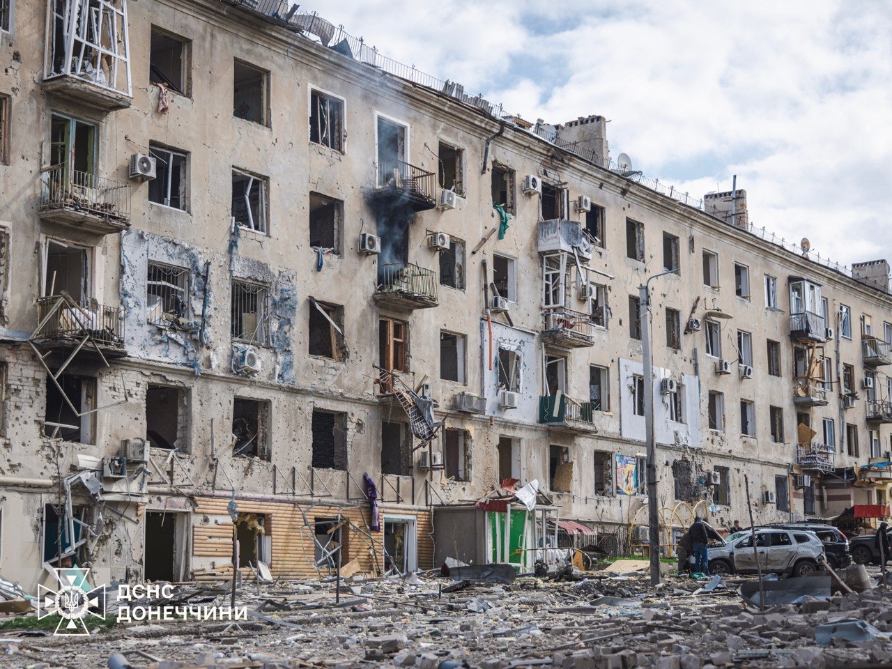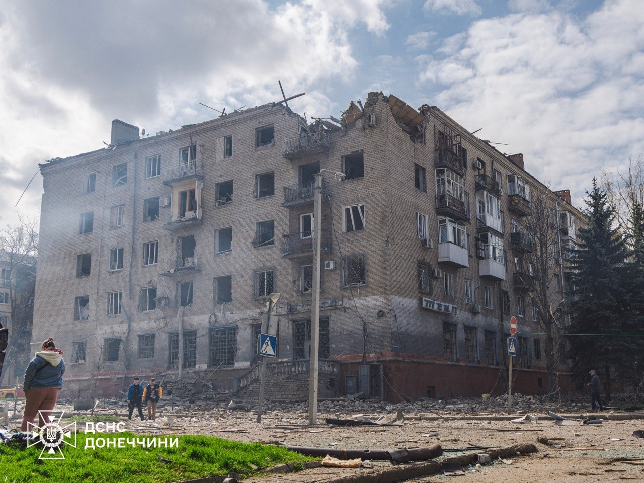 «Сегодня враг в очередной раз нанес удар по жилой застройке Краматорска. В результате атаки ранения получили 10 человек, повреждены 17 многоквартирных домов и 12 автомобилей», — сообщает ГСЧС 11 апреля.
