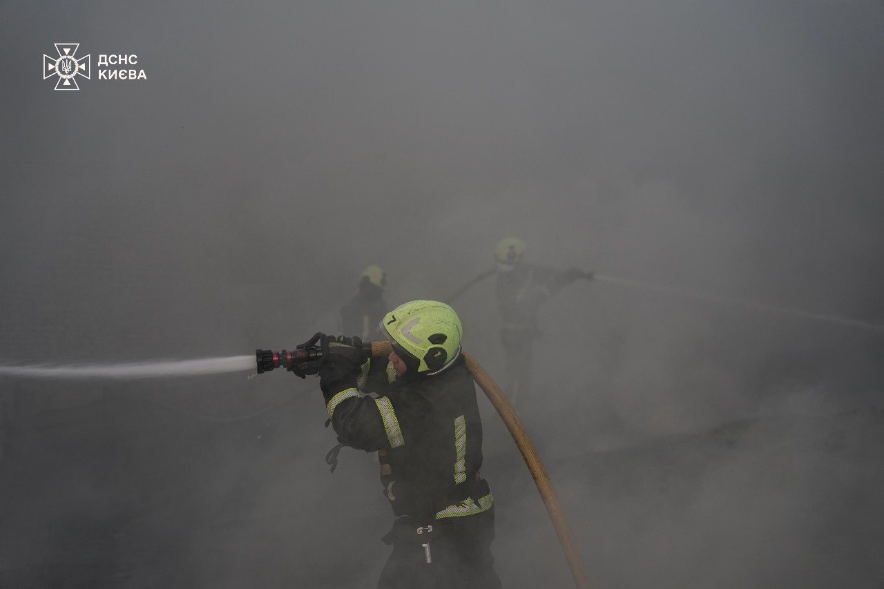 "12 апреля враг совершил очередную атаку на столицу. Спасатели ликвидируют последствия в Святошинском районе города", - говорится в сообщении.