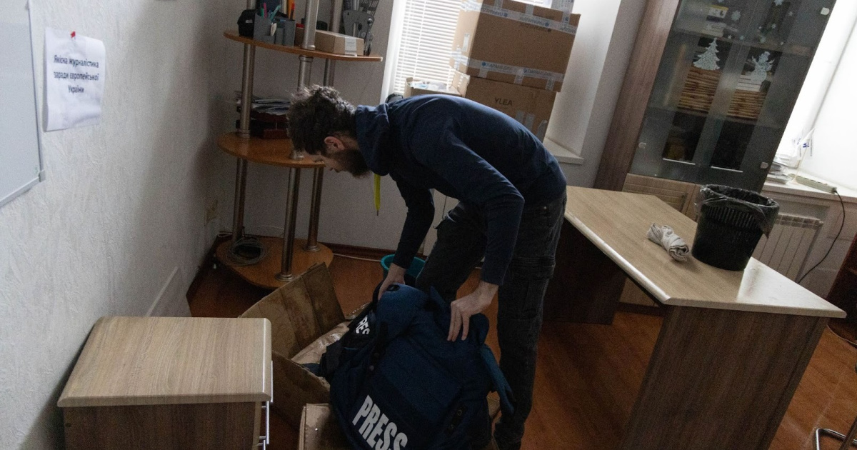 Комната, где хранилось защитное снаряжение и энергетическое оборудование, которые ИМИ предоставляет в пользование медиаработникам - бронежилеты, шлемы, аптечки, зарядные станции — была затоплена. Вода попала, в частности, на офисную технику и оборудование.