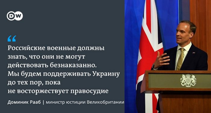 В Лондоне в марте встретятся министры юстиции всех стран, готовых помочь Международному уголовному суду в Гааге в расследовании военных преступлений в Украине, совершенных российскими военнослужащими. Об этом сообщает DW Главное.