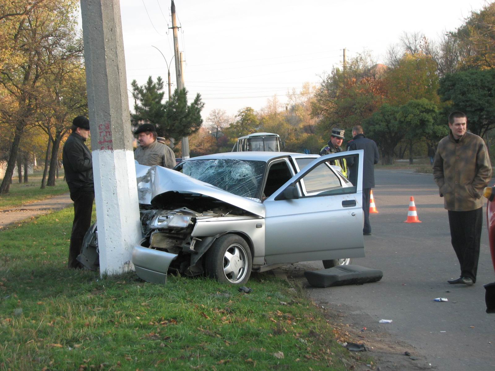 В 03:50 26 октября на ул. Б.Хмельницкого водитель автомобиля „ВАЗ-21121” не справился с управлением и совершил наезд на бетонный столб наружного освещения.