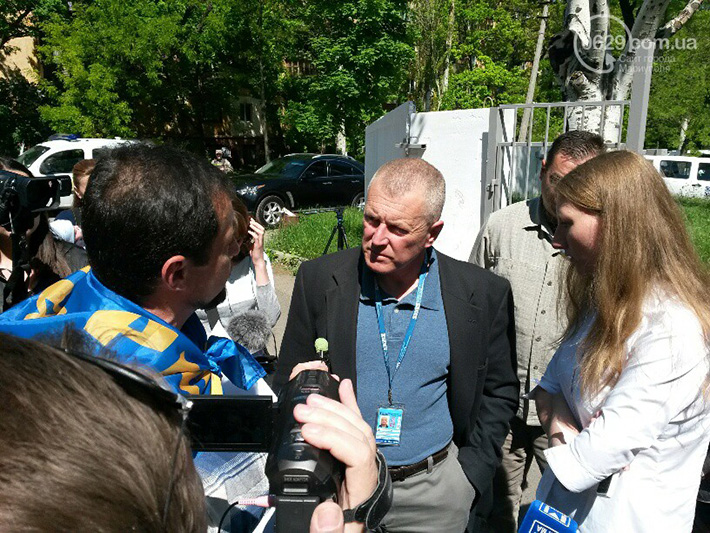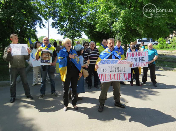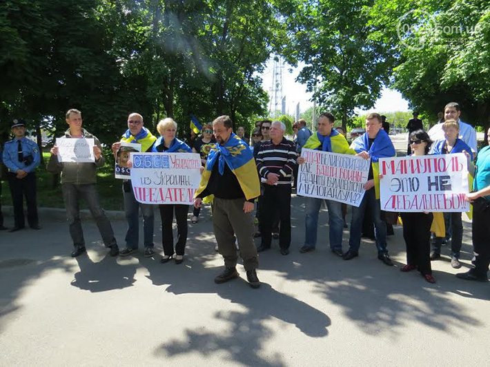 По информации журналистов, всего у здания ОБСЕ в Мариуполе собралось более двух десятков человек. У вышедшего к ним представителя миссии Джеймса Пау митингующие спрашивали: «Почему Вы не признаете, что в Широкино воюют регулярные российские войска, что Россия поставляет им оружие?».