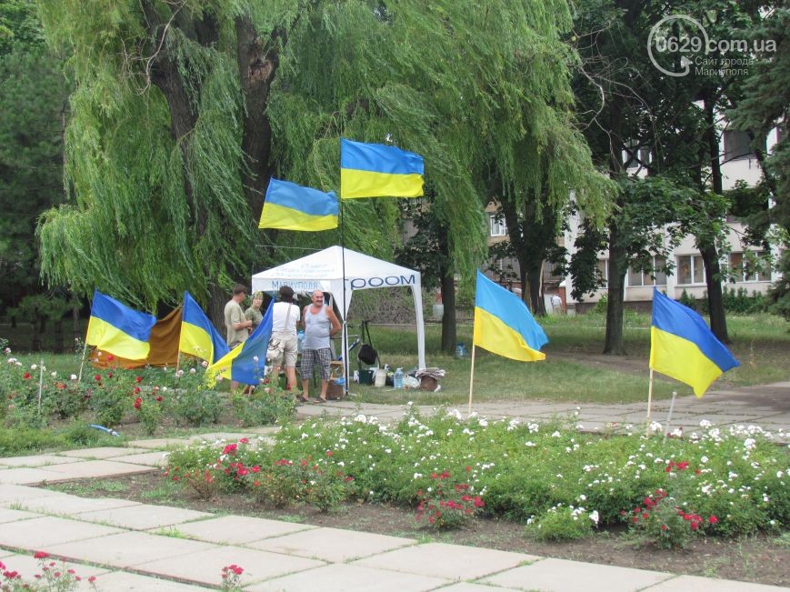 «За вчерашний день расписались более 300 мариупольцев. Для поддержания порядка на площади дежурит машина милиции. У ступеней здания установлены два биотуалета», - пишет «0629».