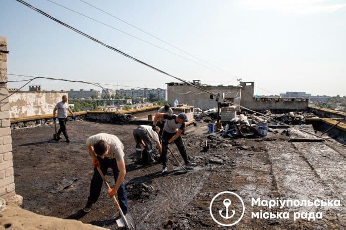 Ремонтные работы по восстановлению жилья, пострадавшего от июньских стихий, проводят в Мариуполе. Об этом 23 июля сообщает пресс-служба горсовета.