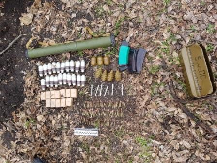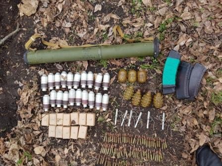 Около села Александровка в Днепровском районе сотрудники спецслужбы обнаружили скрытые в лесопосадке гранатомет РПГ-22, три выстрела к РПГ-7, четыре гранаты РГД-5, противотанковую мину ТМ-62 и сто патронов различного калибра.