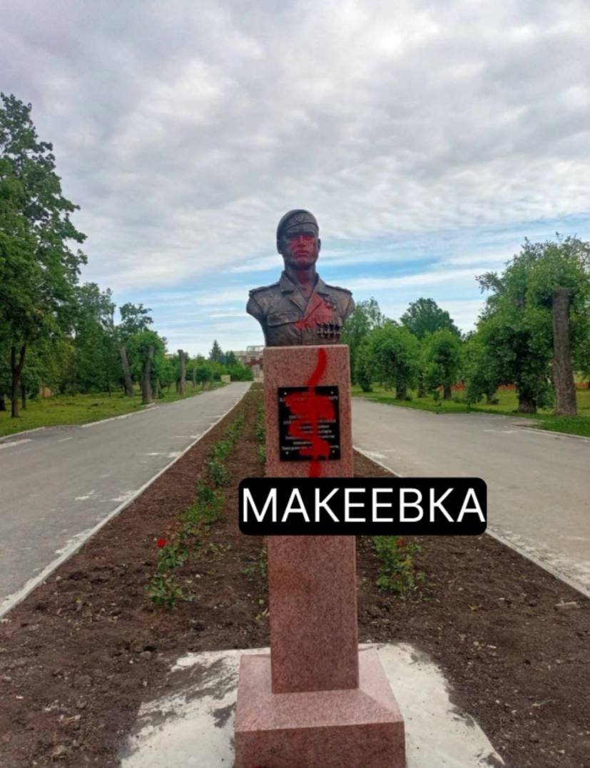 В оккупированной Макеевке на бульваре 8 сентября облили красной краской памятник боевику Владимиру Жоге, отец которого Артем является «главой народного совета ДНР». Об этом пишут в местных пабликах 27 мая.