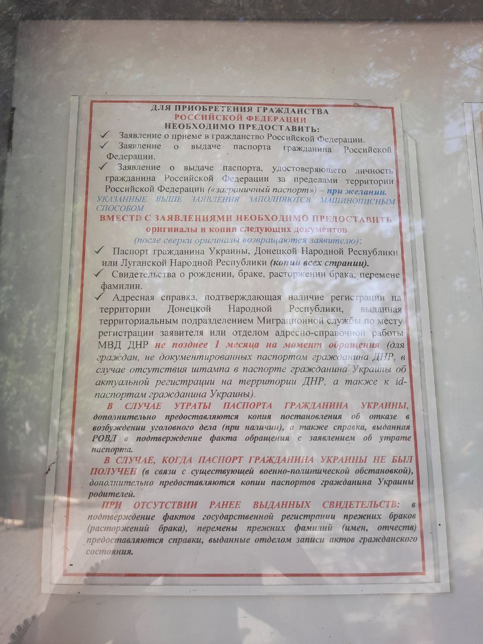 "Новоазовск начал приём документов от мариупольцев на оформление российского паспорта. Фото сегодня из дверей миграционной службы так называемой "ДРР". Кузница "новых россиян" работает без выходных. Очередей нет, даже электронных. Не спасает ситуацию организация специальных автобусов для желающих. Ну, не хотят мариупольцы не быть украинскими гражданами. Мариуполь оказался очень не дружен с оккупантами. Неожиданно для оккупантов и вполне ожидаемо для украинцев"- написал Андрющенко.