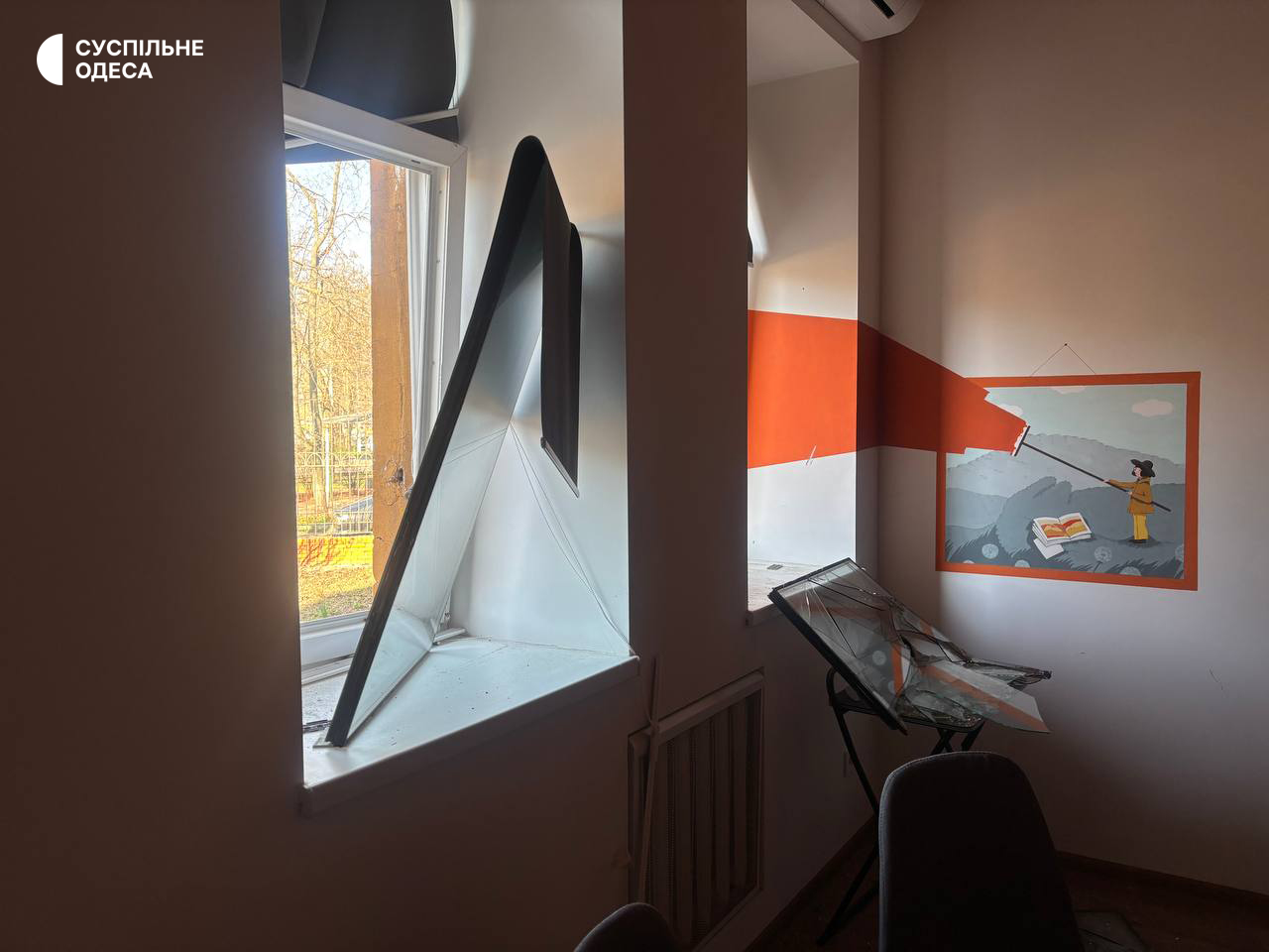 «28 марта в результате российского обстрела были повреждены здания «Суспільне Одеса»: в одно из зданий попал «шахед» — оно не подлежит восстановлению. В других помещениях разрушения и выбитые окна. Погибших и раненых нет. Команда продолжает работать», — сообщили на корпоративном сайте «Суспільного» 28 марта.