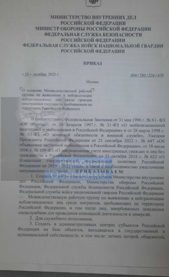 В рамках полномочий этой группы будет не только розыск подозрительных граждан, но и создание фильтрационных лагерей для мигрантов из Украины. Все мигранты должны быть проверены до 31 декабря 2022 года.