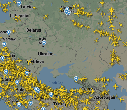 Так сегодня выглядят авиамаршруты на территории рф согласно данным сервиса Flightradar24.com.