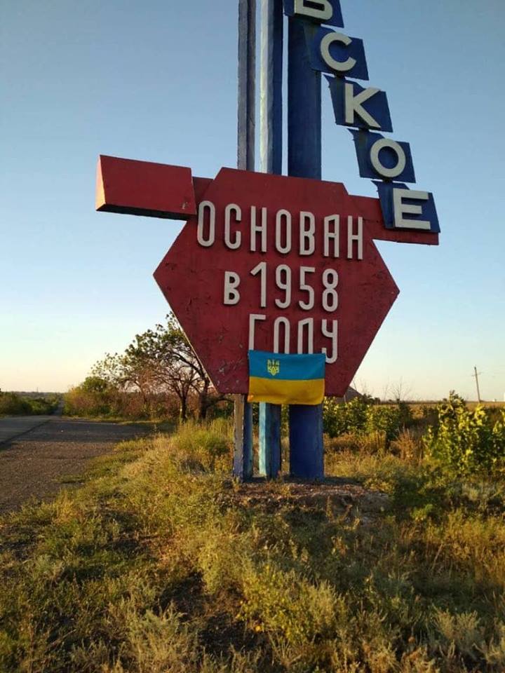 "А шо я маю:) Наші люди всюди або День незалежності України в окупованому Донбасі. Напередодні Дня назалежності та до Дня українського прапора в різних містах так званої "ДНР" з'явилися патріотичні написи та синьо-жовті прапори. Фото з надійних джерел:)", - написала она.