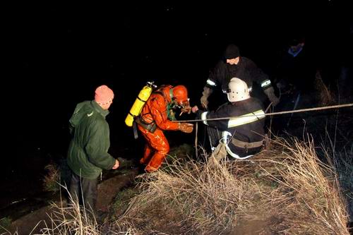 По причине плохой видимости в воде и сильного течения легковой автомобиль не сразу был обнаружен. Водолазам удалось спасательными веревками привязать автомобиль за передний бампер и уже в 19.13 при помощи специальной техники МЧС «Jeep Grand Cherokee» был вытащен на берег.