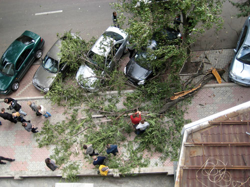 Кроме того, рухнувшее дерево повредило две иномарки, припаркованные на обочине проспекта.