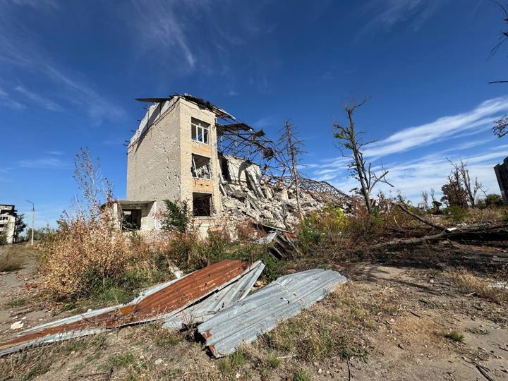 Угледар Волновахского района после серии неудачных наступлений россиян летом и осенью 2024 года был подвергнут массированной бомбардировке, ракетным обстрелам и был практически полностью уничтожен. 1 октября 2024 года ВС РФ смогли войти в разрушенный ими город Фото разместил донецкий журналист Денис Казанский