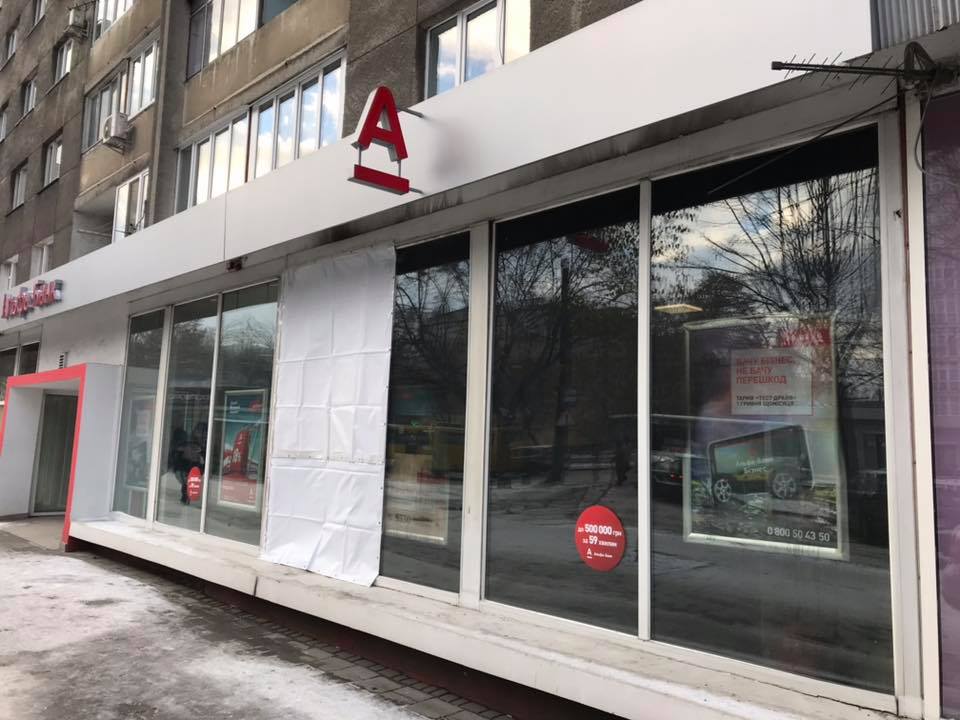 Также в 03:30 на перекрестке ул. Черновола 45, неизвестные лица, разбив окно помещения "Альфа Банка" бросили зажигательную смесь в результате произошло возгорание помещения - 5 м.кв.
