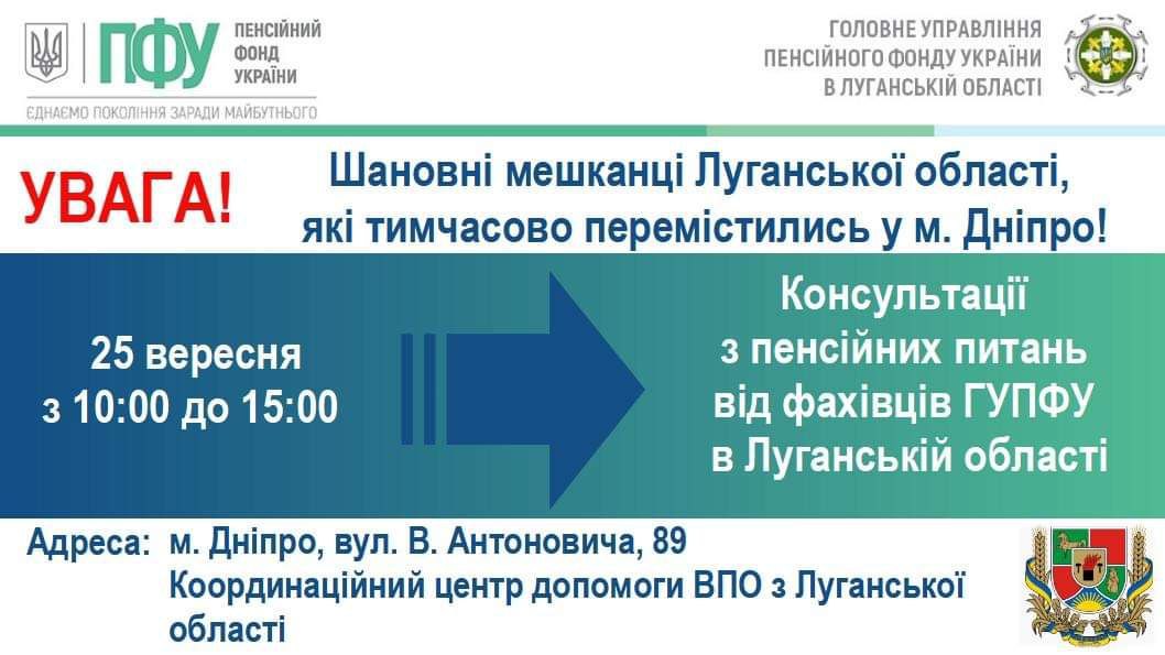 Как сообщается, 25 сентября состоится очередной прием жителей нашего региона специалистом Главного управления Пенсионного фонда Украины в Луганской области.