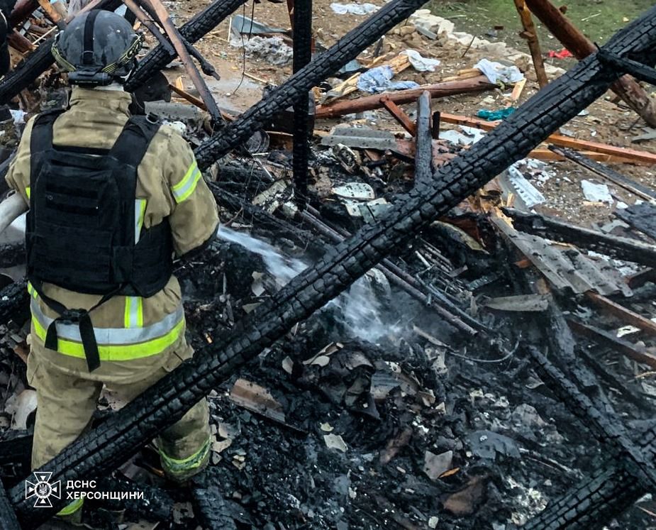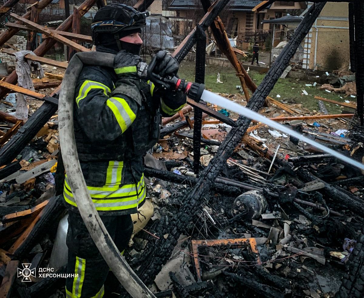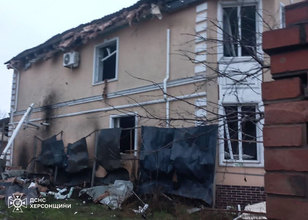 "Херсонщина: утром российские войска нанесли удары по Чернобаевке, пострадали два человека. Попадание боеприпасов привело к частичному разрушению жилых домов. Возник пожар на крыше одного из частных домов. Спасатели ликвидировали очаг горения", - сообщила ГСЧС Украины в Телеграм, опубликовав соответствующие фото, 1 декабря.