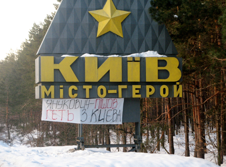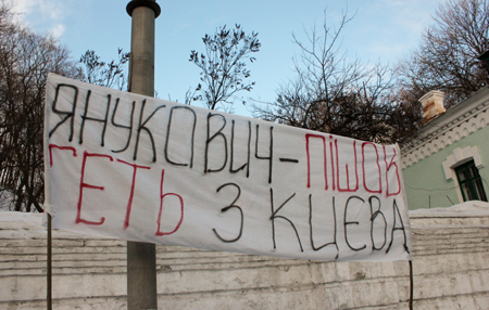 Организаторы акции сообщают, что таким образом они пытались сказать Януковичу, что человек, который не уважает киевлян, не вправе проживать и работать в их городе.