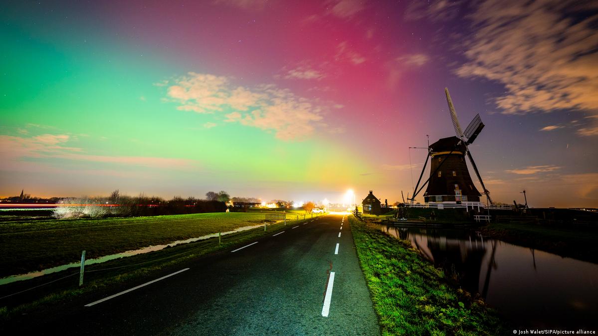 На фото: северное сияние в Баварии, Нидерландах, Гренландии и во Львове.