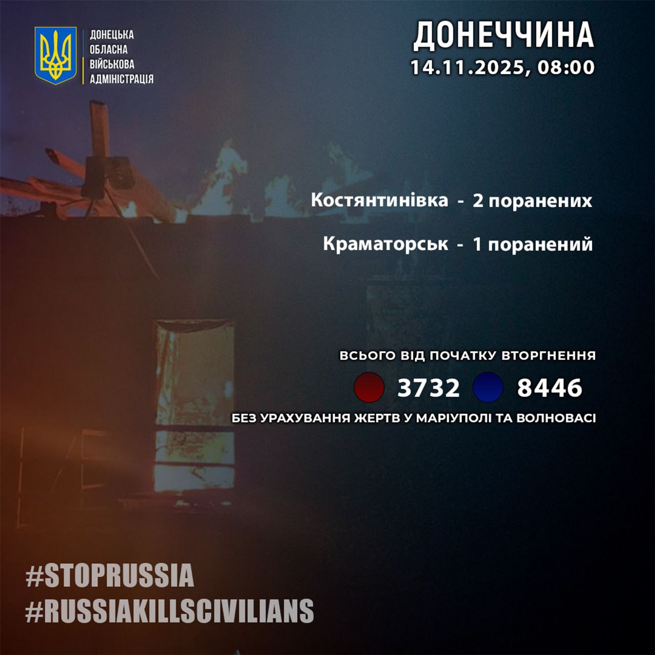 «За 13 ноября россияне ранили 3 жителей Донецкой области», - сообщил глава Донецкой ОВА Вадим Филашкин.