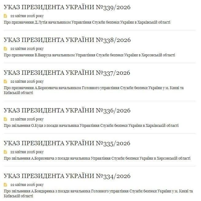 В частности, в Киеве и Киевской области с должности начальника Главного управления СБУ уволен Артем Бондаренко. Вместо него назначен Артем Борисевич, который ранее возглавлял управление СБУ в Херсонской области. Новым руководителем областного управления СБУ стал Владимир Ваврух.