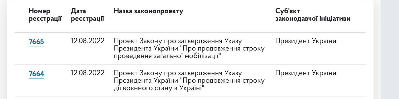 Впоследствии Железняк добавил, что военное положение и мобилизация будут продлены на 90 суток с 23 августа, то есть до 21 ноября.