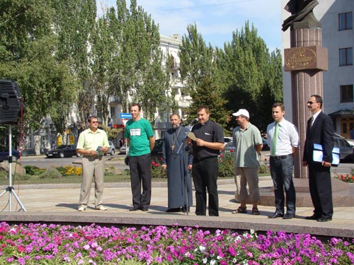 В шествии приняло участие около ста человек. Организаторами акции выступили Всеукраинский фонд "Семья", институт Церковно-государственных отношений, благотворительная организация "Гедеон", благотворительный фонд "Каритас", совет христианских церквей г. Донецка, Всеукраинская общественная организация "КЭМПУС", реабилитационный центр "Твоя Победа"