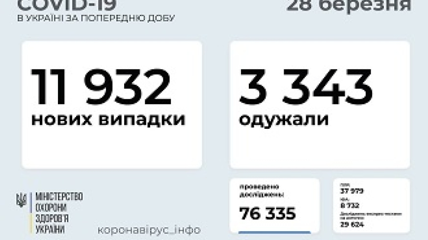 Еще 11 932 новых случая коронавируса зафиксировано в Украине в субботу. Об этом говорится в сообщении Министерства здравоохранения. В том числе, заболели 564 ребенка и 181 медработник. За минувшие сутки были госпитализированы 5052...