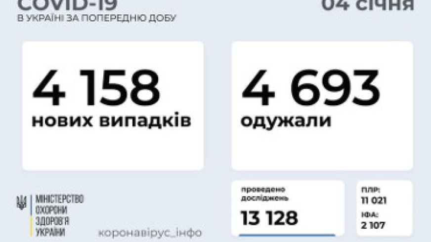 По состоянию на 4 января 2021 года в Украине зафиксировано еще 4158 новых случаев коронавирусной болезни COVID-19. Об этом на своей Фейсбук-странице сообщил глава Минздрава Максим Степанов. По его словам, в числе заболевших за сутки - еще 170...