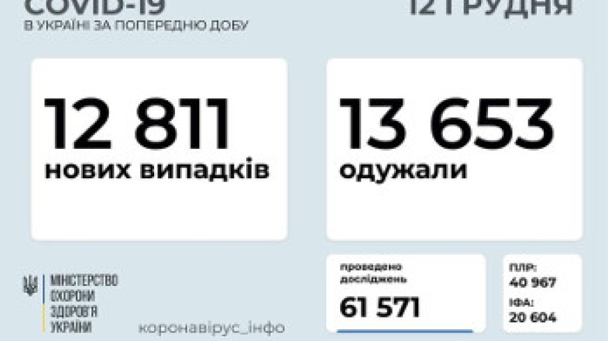 В Украине за минувшие сутки, 11 декабря, зафиксировано еще 12 811 новых случаев коронавирусной болезни COVID-19. Об этом сообщает министр здравоохранения Максим Степанов в Facebook. За прошлые сутки COVID-19 заболели 12 811 человек, из которых...
