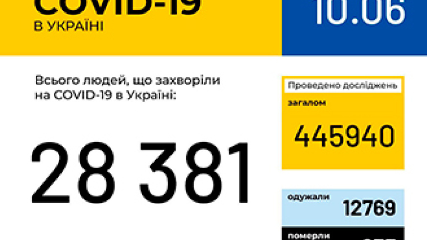 В Украине по состоянию на 10 июня зафиксированы 28 381 случаев коронавирусной болезни COVID-19. Об этом сообщил министр здравоохранения Максим Степанов сегодня на брифинге в Киеве, - передает корреспондент "ОстроВа". "За прошлые...