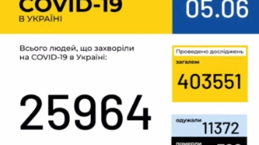 В Украине по состоянию на 5 июня зафиксированы 25 964 случаев коронавирусной болезни COVID-19. Об этом сообщил министр здравоохранения Максим Степанов сегодня на брифинге в Киеве, - передает корреспондент "ОстроВа". "За прошлые...