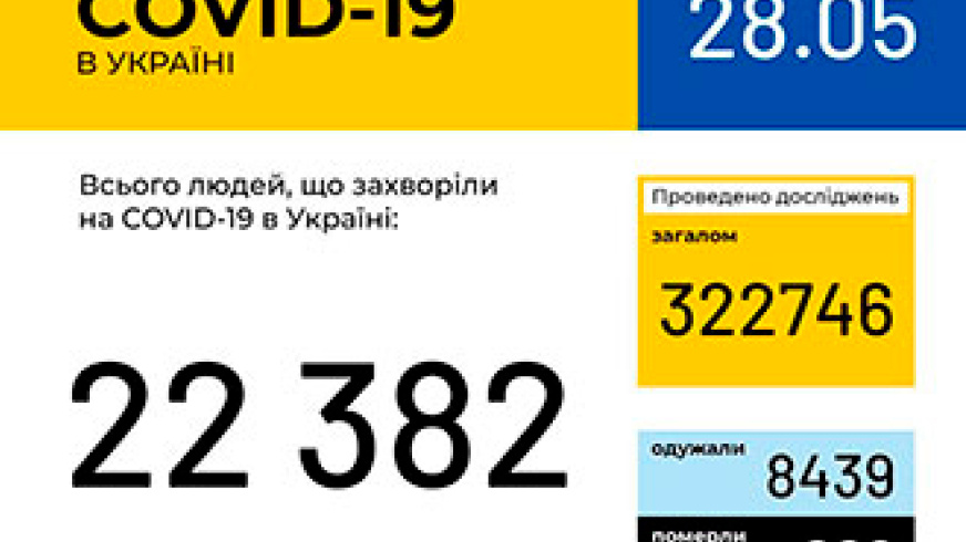 В Украине по состоянию на 28 мая зафиксированы 22 382 случаев коронавирусной болезни COVID-19. Об этом сообщил министр здравоохранения Максим Степанов сегодня на брифинге в Киеве, - передает корреспондент "ОстроВа". "За прошлые...