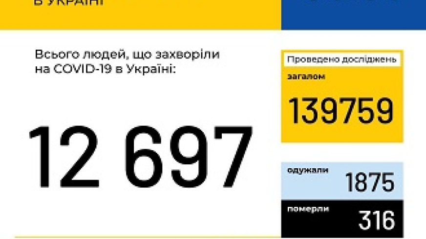 В Украине по состоянию на 5 мая зафиксированы 12 697 случай коронавирусной болезни COVID-19. Об этом сообщил министр здравоохранения Максим Степанов сегодня на брифинге в Киеве, - передает корреспондент "ОстроВа". "За прошлые...