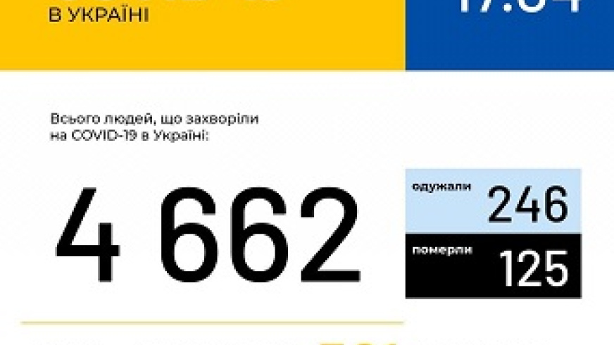 Подтверждены 4662 случая COVID-19 в Украине, пишет Центр общественного здоровья в Facebook. Всего в Украине исследовано 47096 образцов на новую коронавирусную инфекцию методом ПЦР. В течение 16 апреля получено 501 уведомление о новых...
