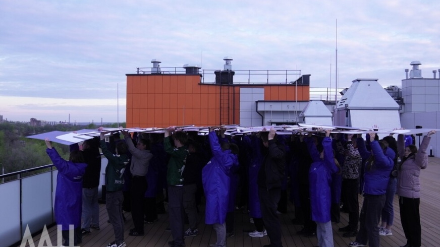 «Порядка 120 активистов „Молодой гвардии“ ДНР выстроили масштабный портрет Сергея Прокофьева на крыше Дома молодёжи», — пишет «официальное» СМИ «ДНР». «Флешмоб прошёл под живое исполнение...