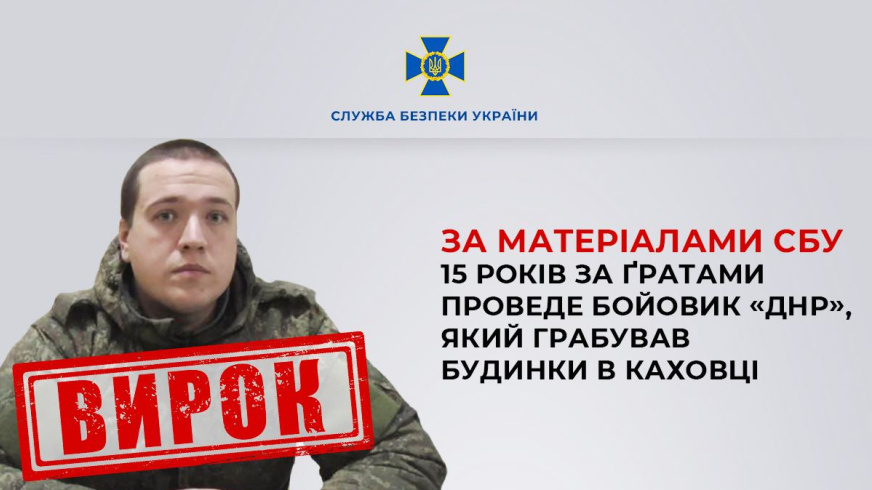 По материалам СБУ 15 лет за решеткой проведет боевик "ДНР", который грабил дома в Каховке. Об этом сообщили в Телеграм-канале ведомства 8 июня. "Служба безопасности собрала доказательную базу на еще одного участника террористической организации...