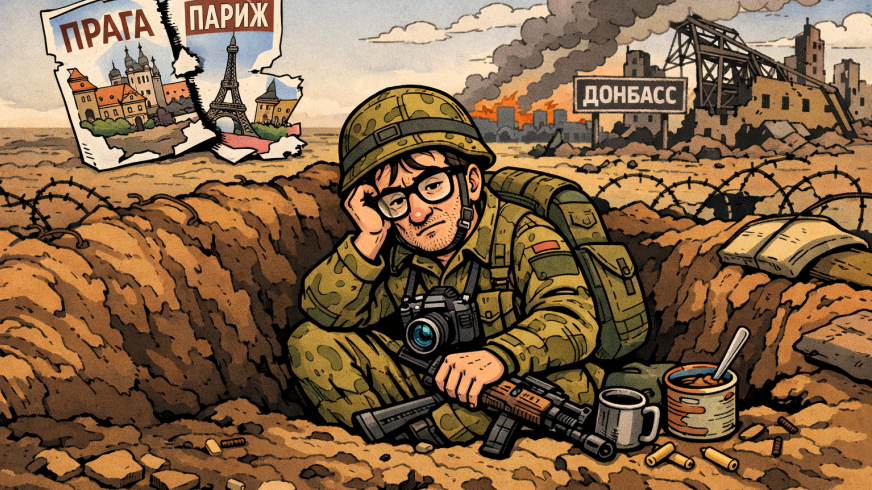 "Человек проживет пару дней из жизни обычного парня по имени Артем, который поднимается из угольной шахты, становится добровольцем, проходит курс молодого бойца, дальше учится летать на коптерах, смотрит на руины ближайших городов и знакомится с...