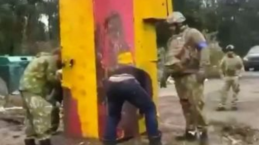 Пленных рашистов заставили перекрасить стелу в Купянске. Об этом сообщает Телеграм-канал FREEДОМ. LIFE со ссылкой на спецподразделение Kraken. "Общественные работы от ВСУ. Военнопленных россиян привлекли к восстановлению стелы в Купянске....
