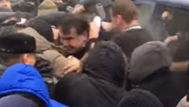 Как Саакашвили освобождали, его сторонники, из микроавтобуса СБУ